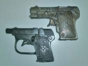 cast-iron Cap Guns from the 1930's. Cindy says that it says, "PREMIER SAFETY"