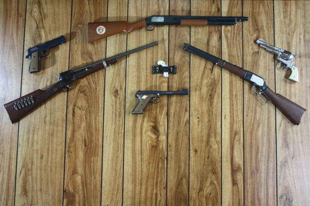 Power-Jet Squad Gun, Colt Six Shooter and Winchester rifles all by Mattel,