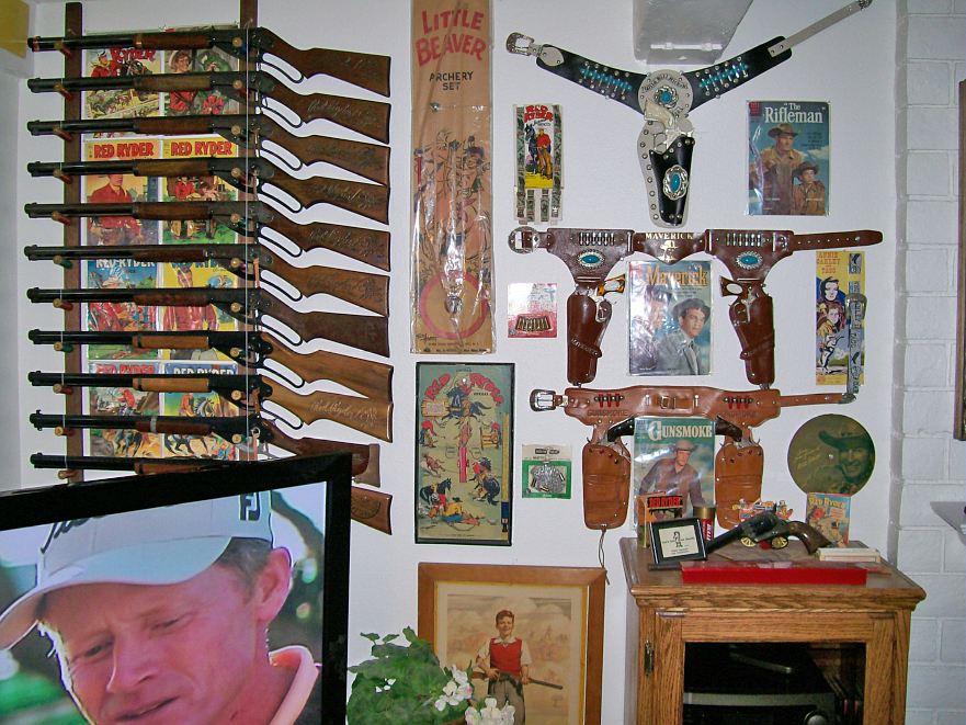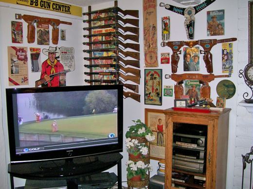 set of BB Guns and other western memorabilia and Cap Guns. I guess his TV and