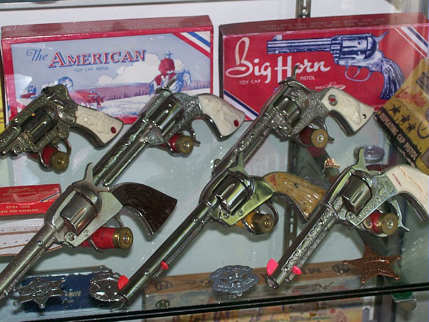 same shelf. Here we see a bunch of Hubley and Kilgore Cap Guns. With a few