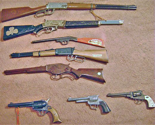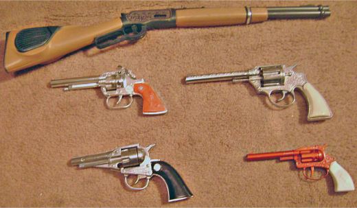 Was Won" rifle, a Cisco Kid (upper left pistol), Plainsman, (upper right) a