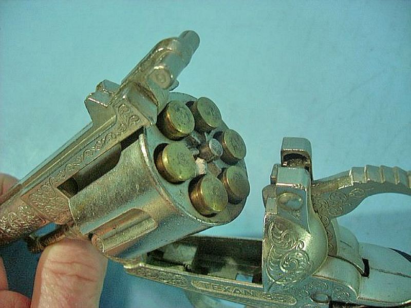 chamber of original Hubley TEXAN 38 toy bullets. The original Beautiful Brown
