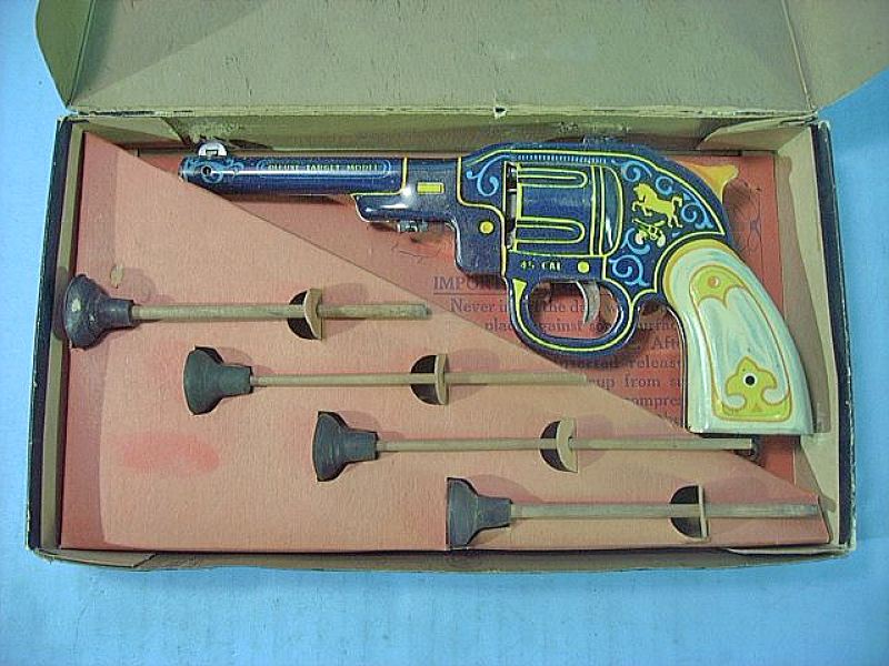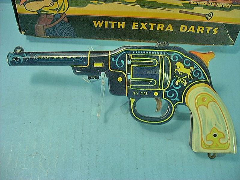 MINT box. This is a beautiful tin toy pistol. You won't be disappointed with